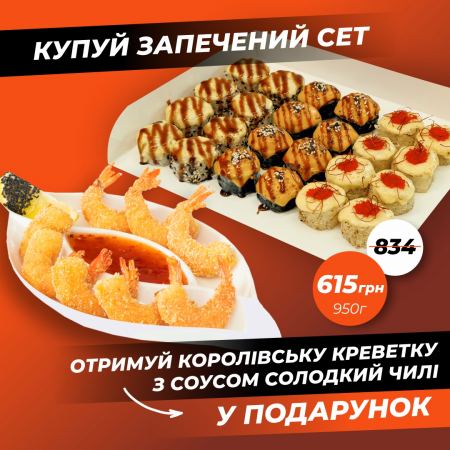 Акція сет Запечений + Креветки в темпурі у подарунок