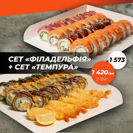 Сет Темпура + сет Филадельфия — всего за 1330 грн!